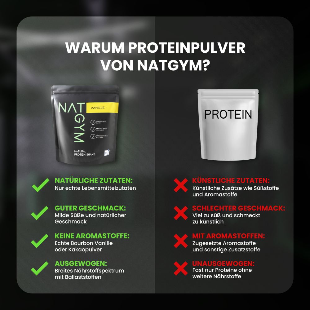 Ja, du kannst unser Proteinpulver problemlos zum Backen verwenden. Auch beim Erhitzen bleiben die natürlichen Inhaltsstoffe stabil und es entstehen keine bedenklichen Abbauprodukte, wie das bei anderen Produkten mit künstlichen Süßstoffen und Aromastoffen der Fall wäre.